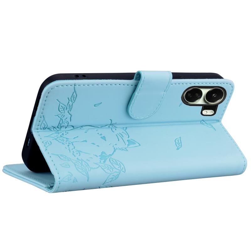 Θήκη τηλεφώνου δερμάτινη ανάγλυφη με χαριτωμένη γάτα για Xiaomi Poco C65 (Πράσινη)