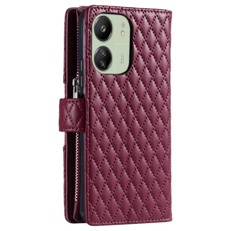 Για Xiaomi Poco C65 Glitter Lattice φερμουάρ πορτοφόλι δερμάτινη θήκη τηλεφώνου (κόκκινο κρασί)