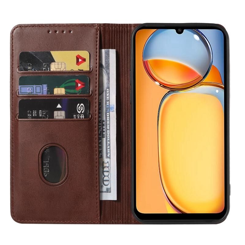 Για Xiaomi Poco C65 / Redmi 13C Μαγνητικό κλείσιμο δερμάτινη θήκη τηλεφώνου (Καφέ)