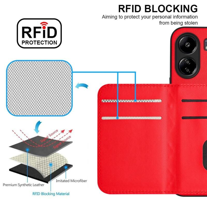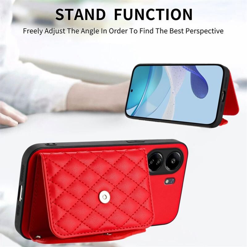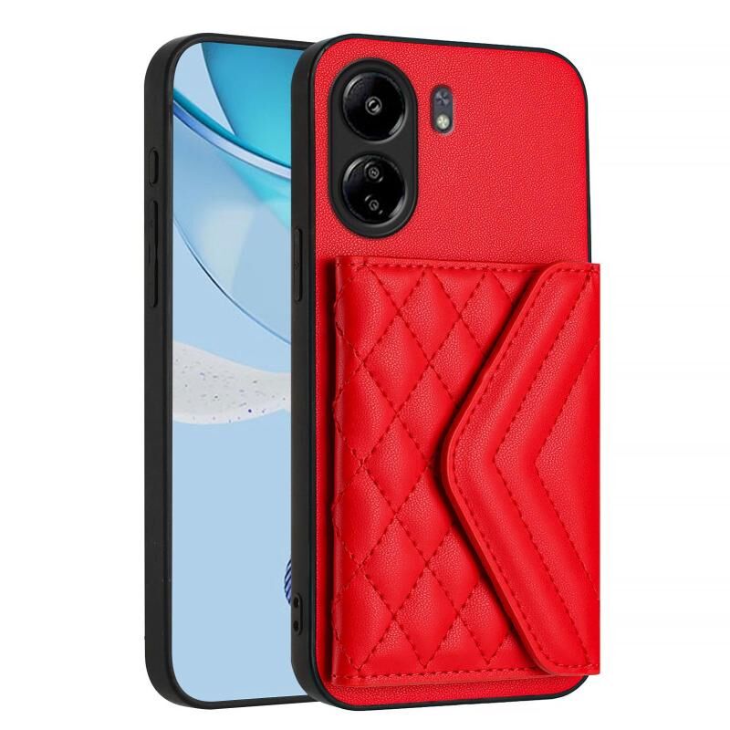Για Xiaomi Poco C65 Rhombic υφή κάρτα τσάντα RFID υπόθεση τηλεφώνου με μακρύ κορδόνι (Κόκκινο)