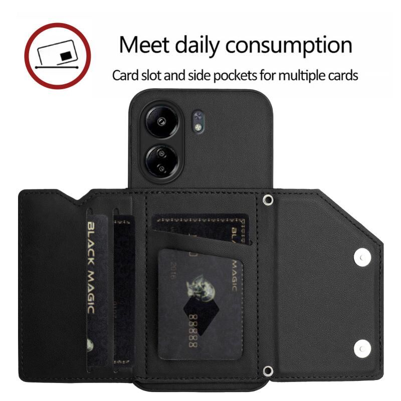 Για Xiaomi Poco C65 Skin Feel Τέσσερις υποδοχές καρτών υπόθεση τηλεφώνου με λουράκι καρπού (Μαύρο)