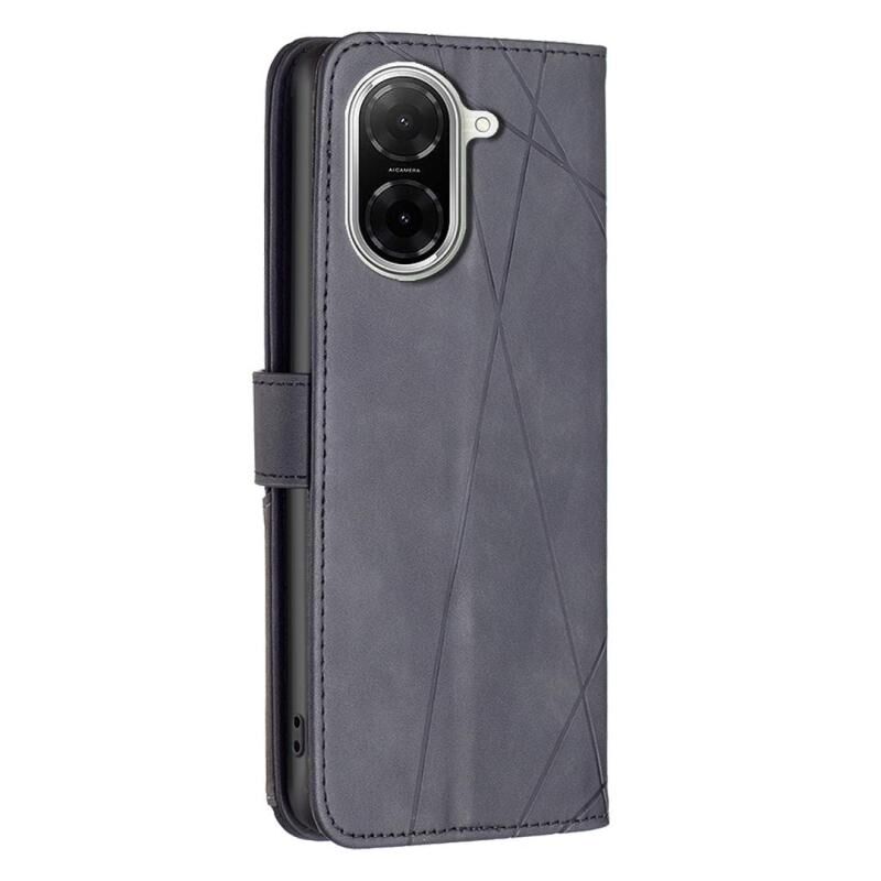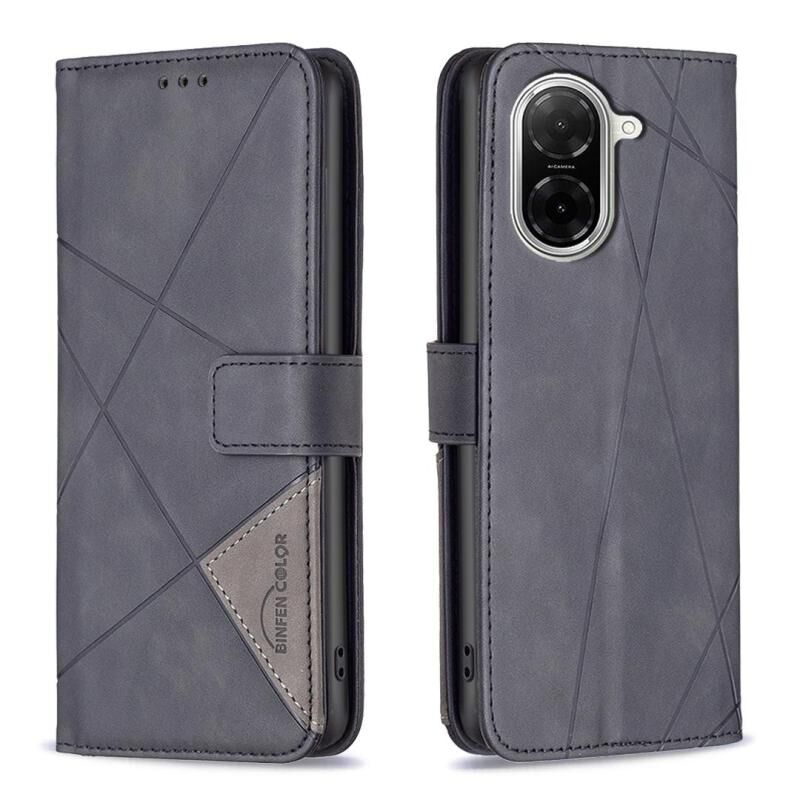 Θήκη τηλεφώνου δερμάτινη με μαγνητικό κούμπωμα και υφή ρόμβου για Xiaomi Poco C71 (Μαύρο)