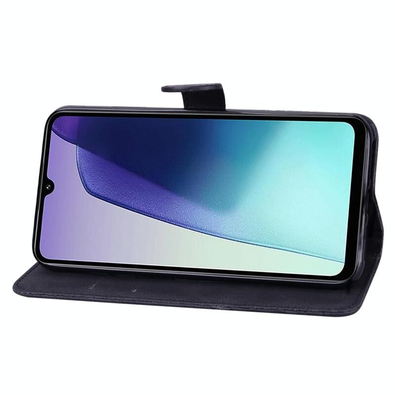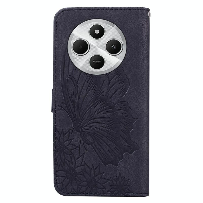Θήκη τηλεφώνου Xiaomi Poco C75 με υφή ρετρό δέρματος, ανάγλυφα σχέδια πεταλούδων, οριζόντια αναδίπλωση (Μαύρο)