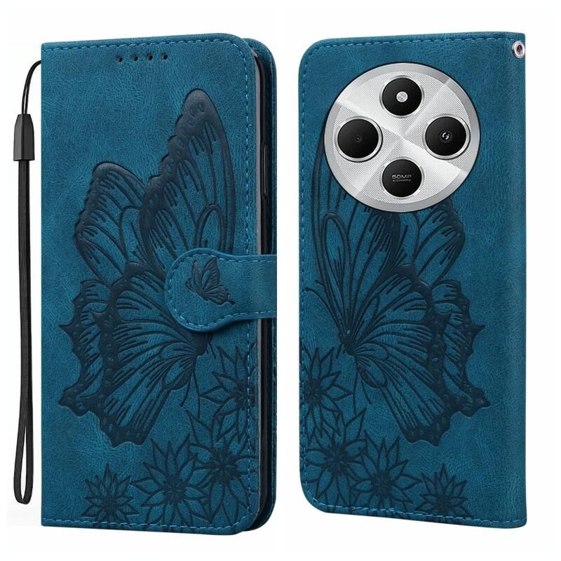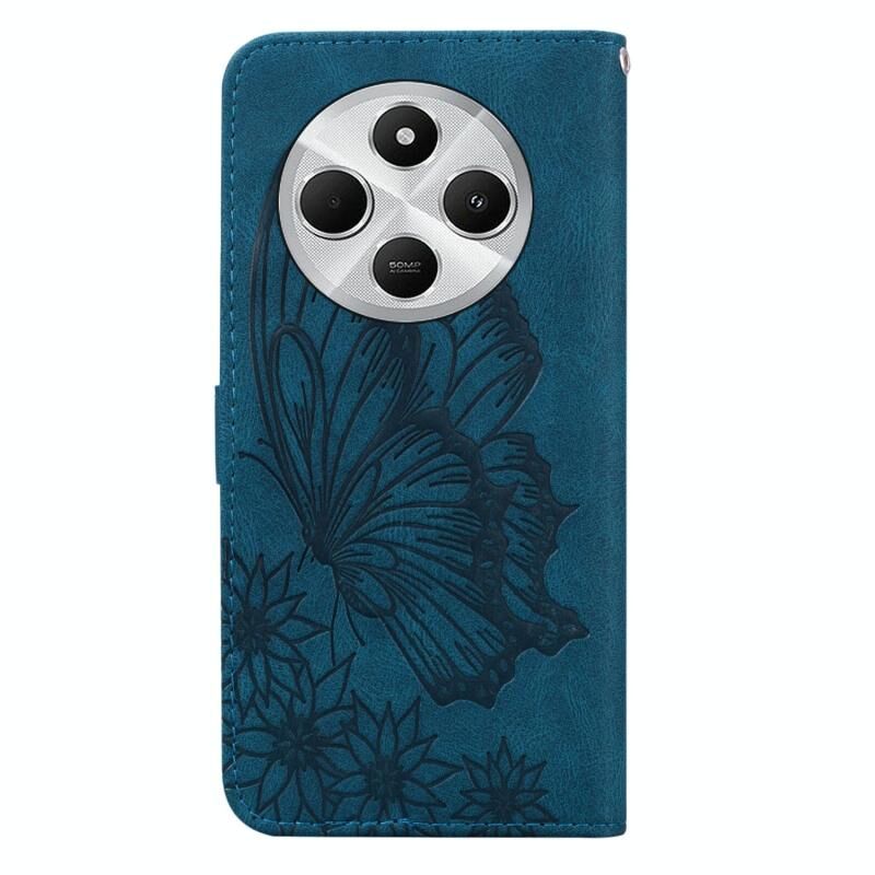 Θήκη τηλεφώνου Xiaomi Poco C75 με υφή ρετρό δέρματος, ανάγλυφα σχέδια πεταλούδων, οριζόντια αναδίπλωση (Μαύρο)