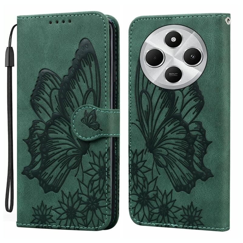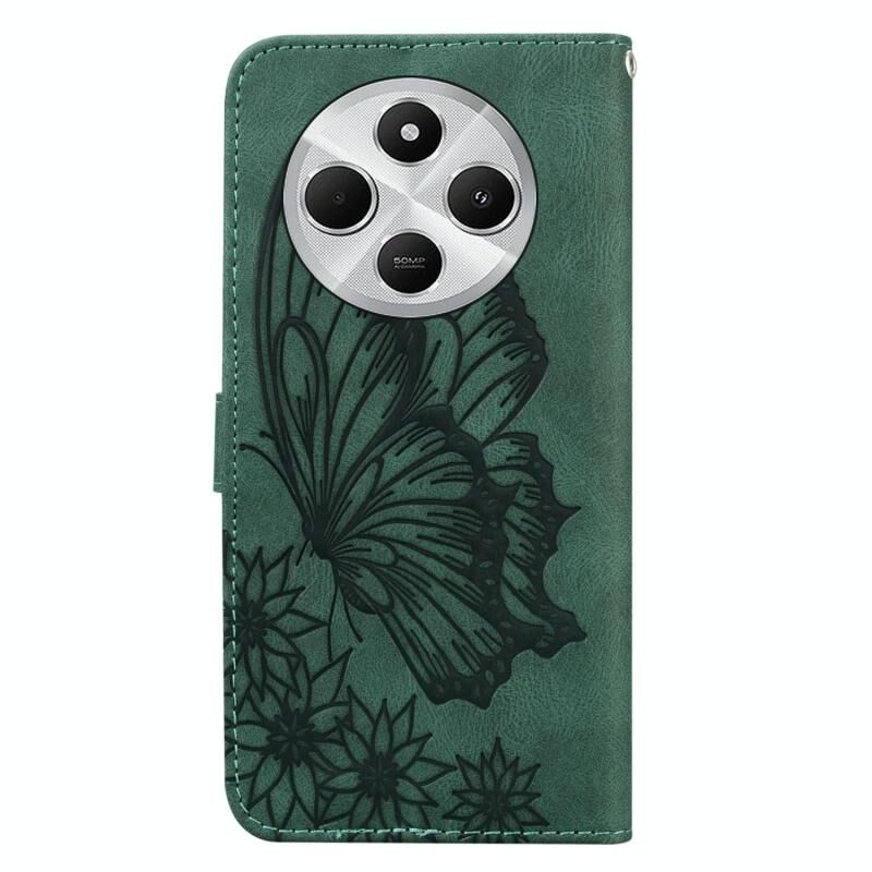 Θήκη τηλεφώνου Xiaomi Poco C75 με υφή ρετρό δέρματος, ανάγλυφα σχέδια πεταλούδων, οριζόντια αναδίπλωση (Μαύρο)