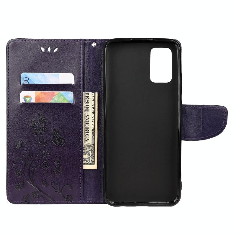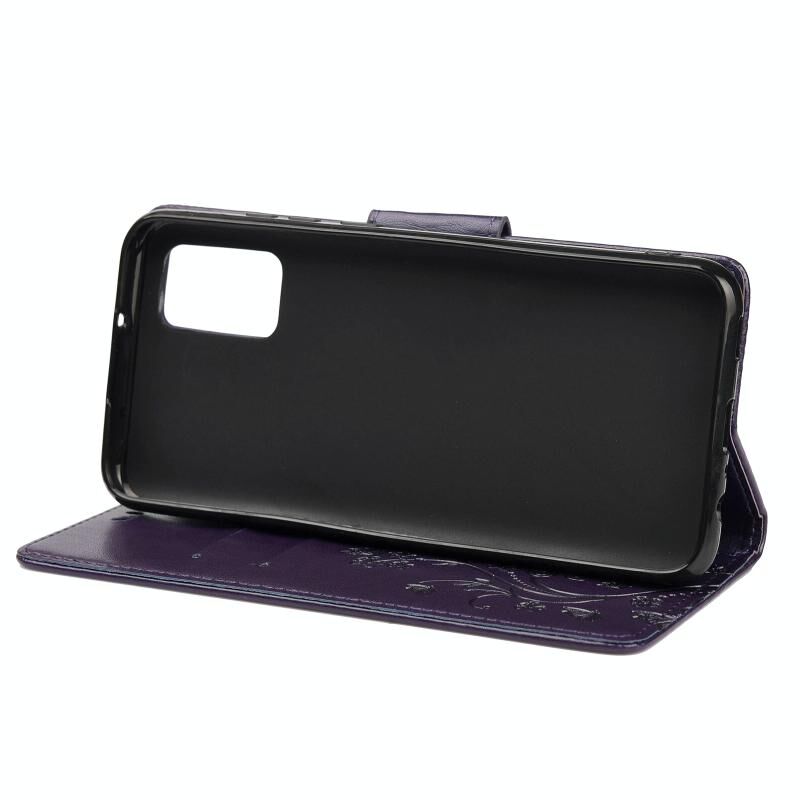 Θήκη δέρματος οριζόντιας αναδίπλωσης για Xiaomi Poco F3 με σχέδιο πεταλούδας και λουλουδιών, με βάση στήριξης & υποδοχές καρτών & πορτοφόλι (Ανοιχτό Μωβ)