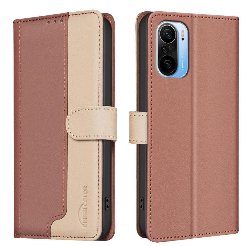 For Xiaomi Poco F3 / Mi 11i Color Matching RFID Anti-theft Leather Phone Case(Brown)