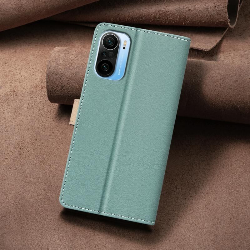 Θήκη τηλεφώνου από δέρμα με αντικλεπτική τεχνολογία RFID και χρωματική αντιστοίχιση για Xiaomi Poco F3 / Mi 11i (Πράσινο)