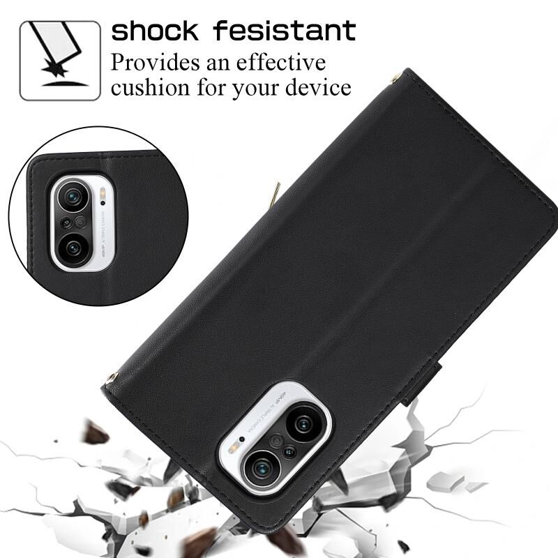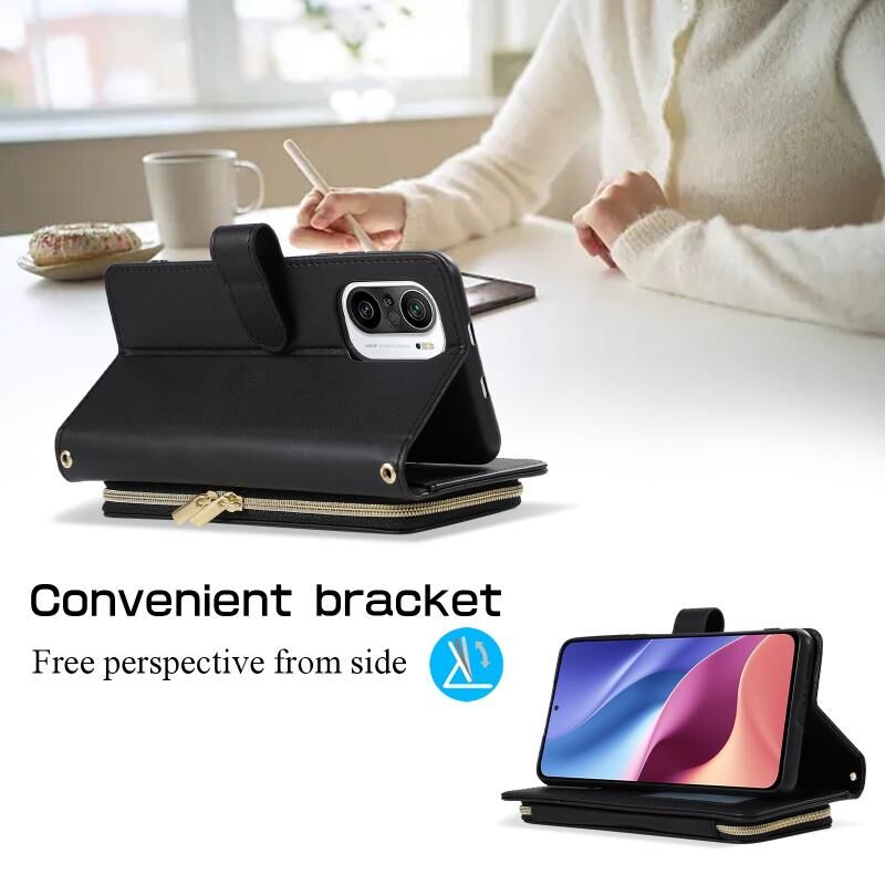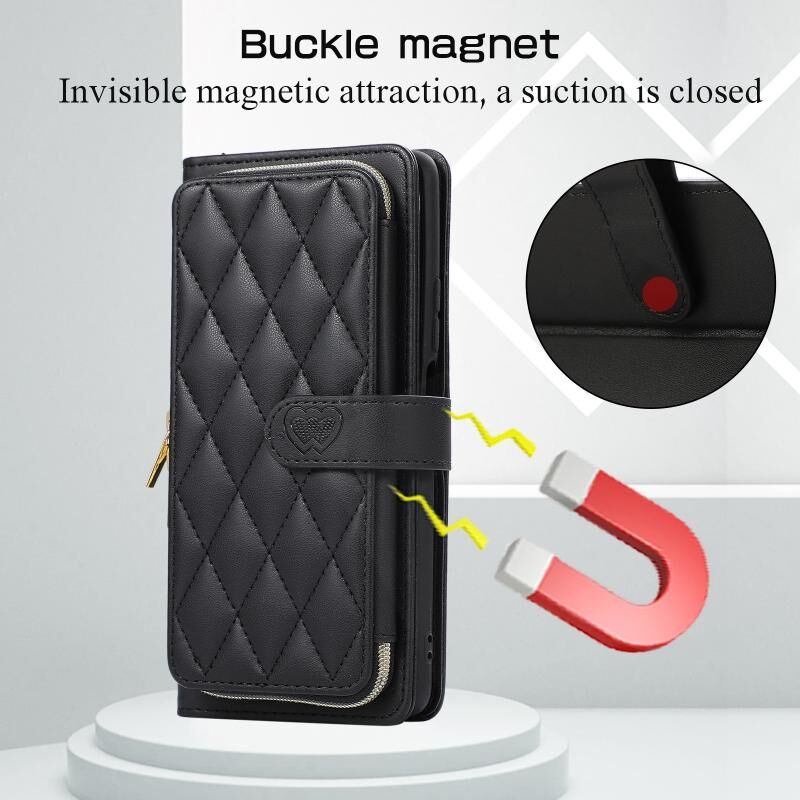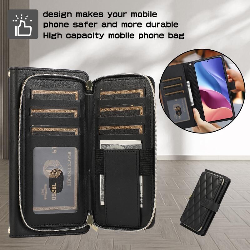 Για Xiaomi Poco F3 Rhombic Πλήρης φερμουάρ πορτοφόλι δερμάτινη θήκη τηλεφώνου (μαύρο)