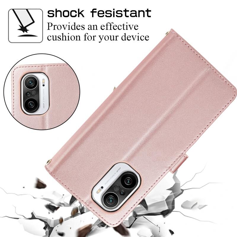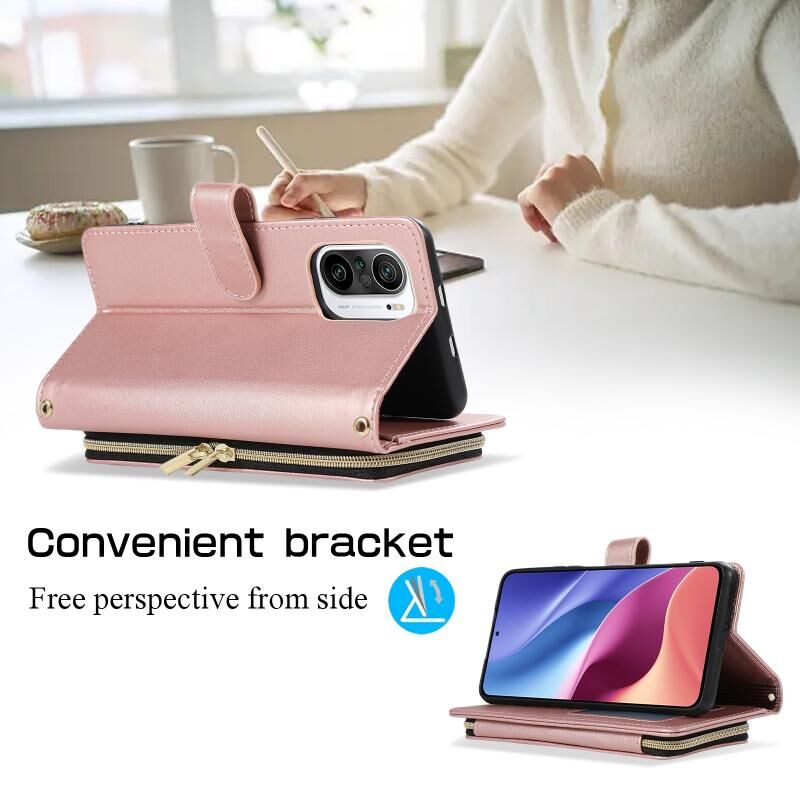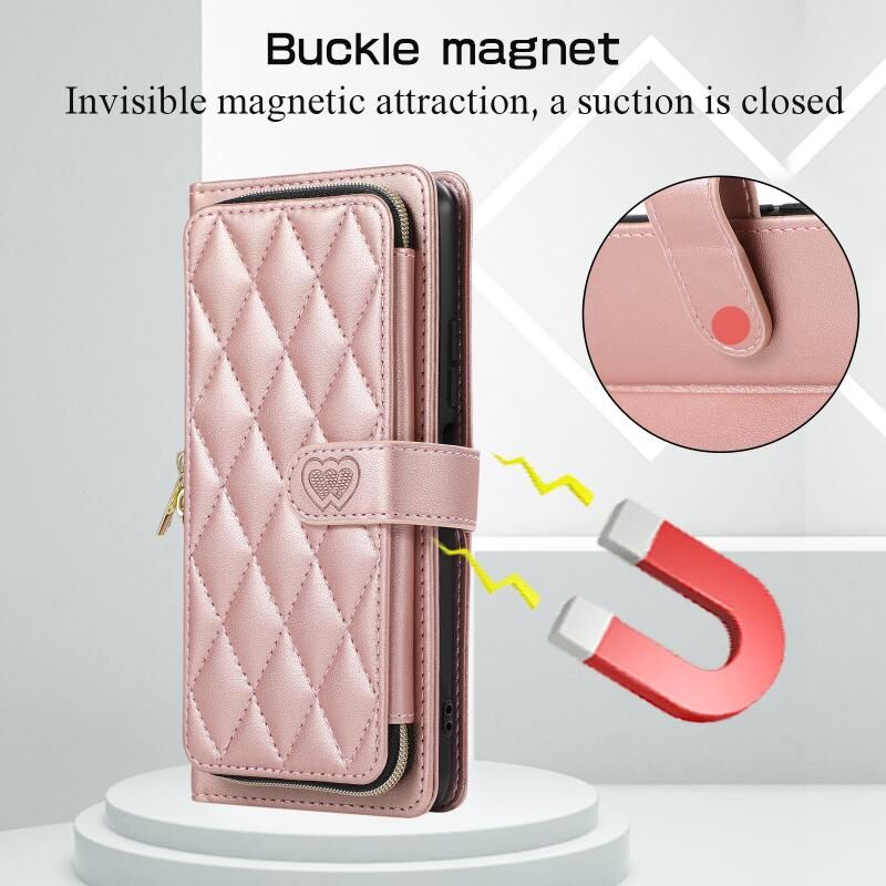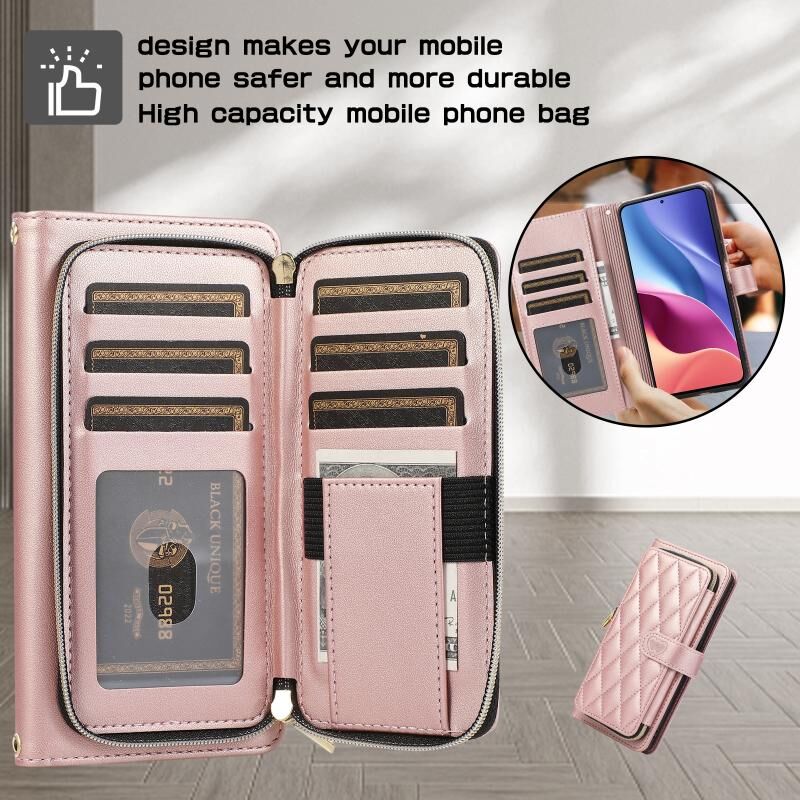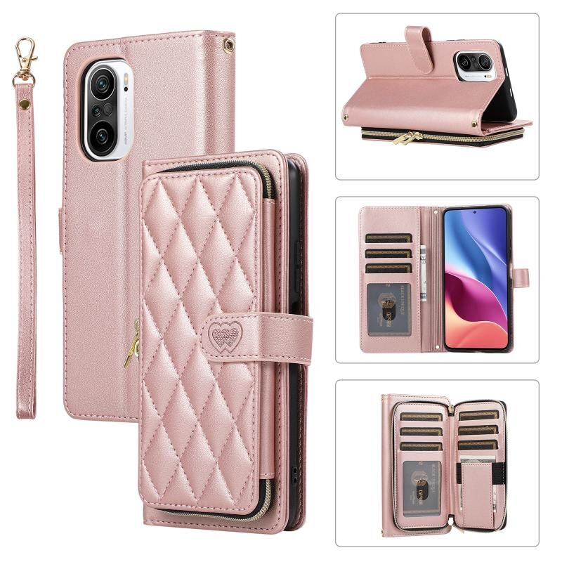 Για Xiaomi Poco F3 Rhombic πλήρη φερμουάρ πορτοφόλι δερμάτινη θήκη τηλεφώνου (Rose Gold)