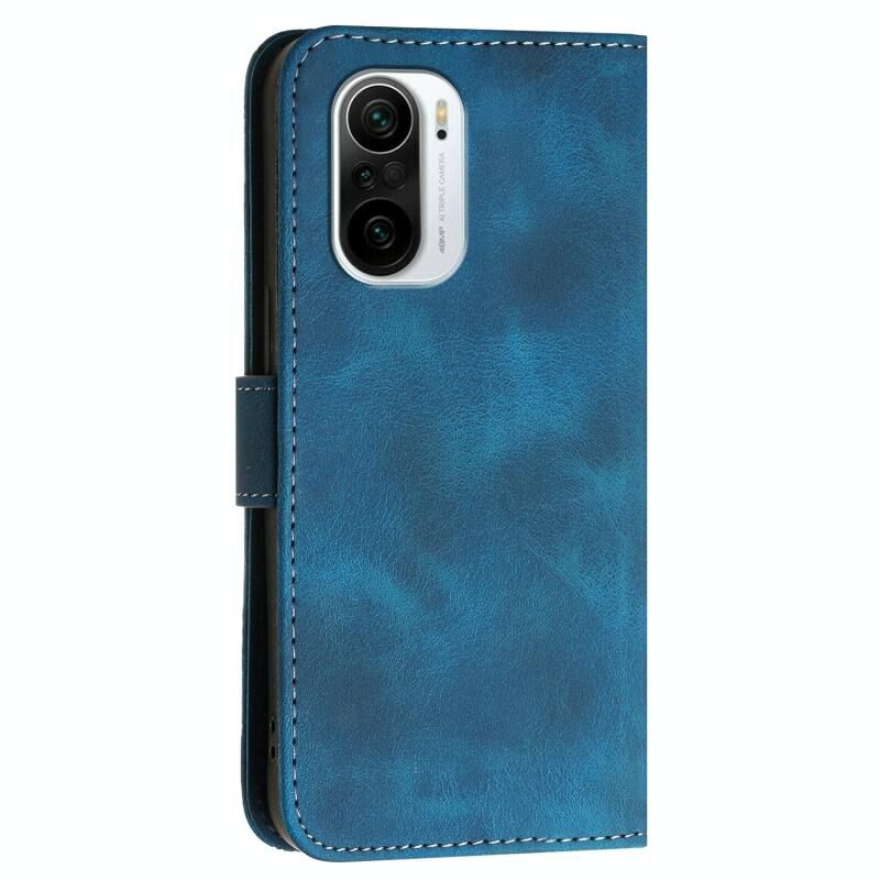 Θήκη τηλεφώνου δερμάτινη με ανάγλυφο σχέδιο πλέγματος και πεταλούδας για Xiaomi Poco F3 YX0080 με κορδόνι (Σκούρο μπλε)