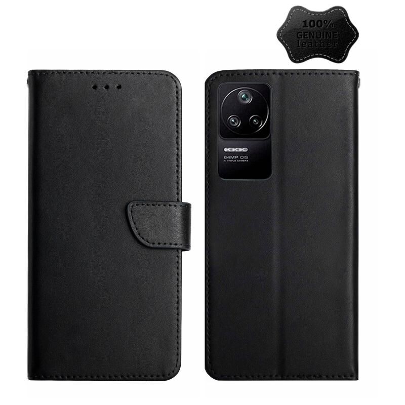 Θήκη τηλεφώνου οριζόντιας αναδίπλωσης από γνήσιο δέρμα για Xiaomi Poco F4 5G, ανθεκτική στα δακτυλικά αποτυπώματα (Μπλε)