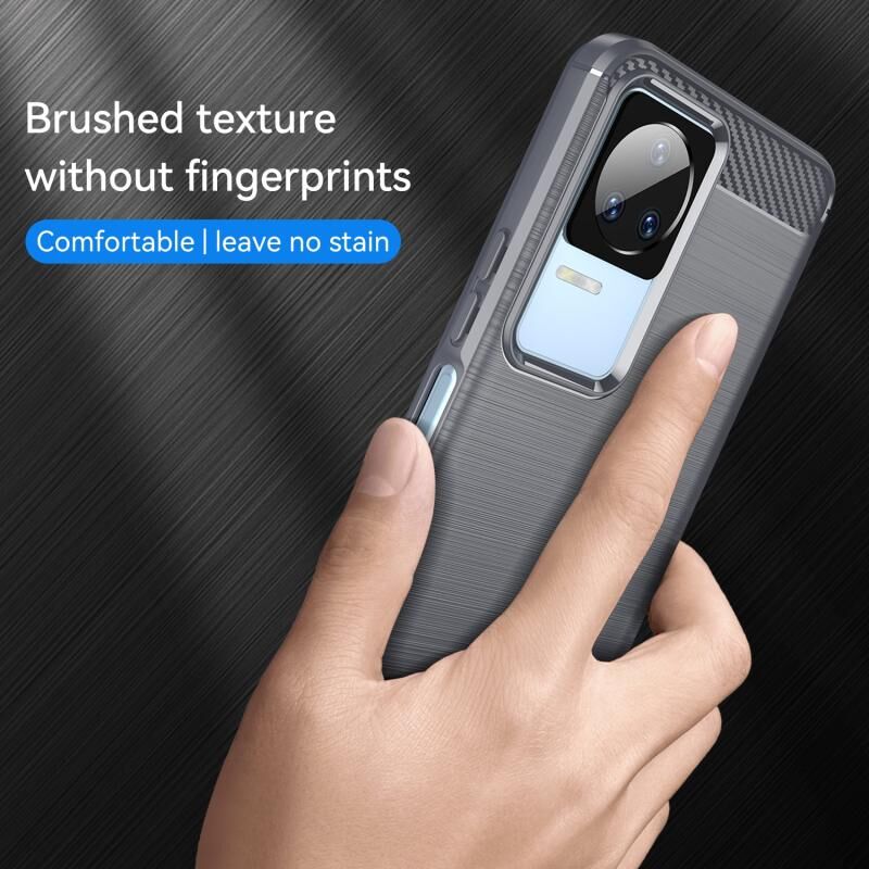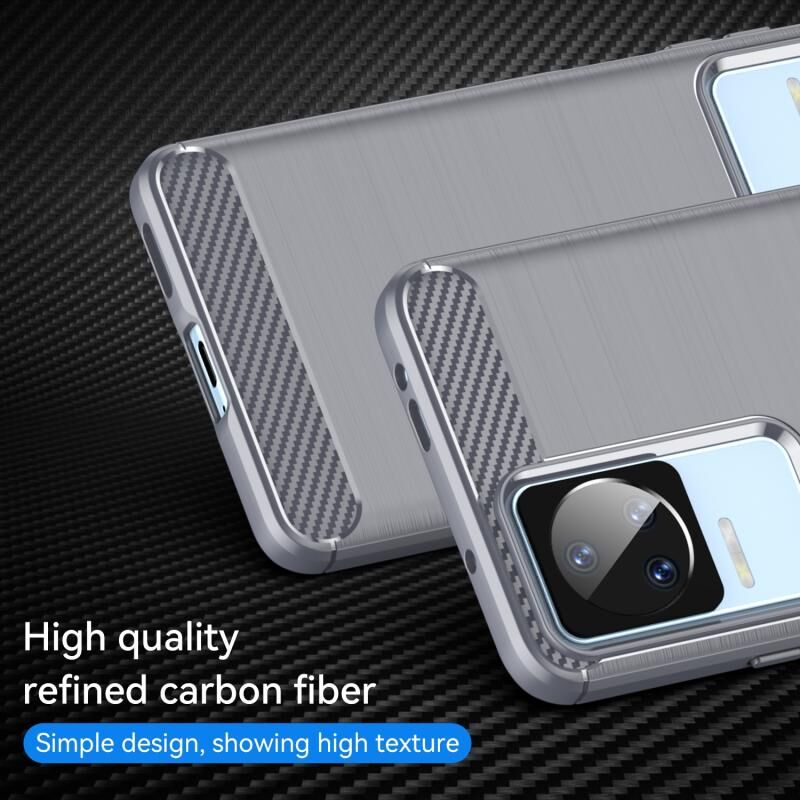 Για Xiaomi Poco F4 βουρτσισμένη υφή Carbon Fiber TPU τηλέφωνο υπόθεση (γκρι)