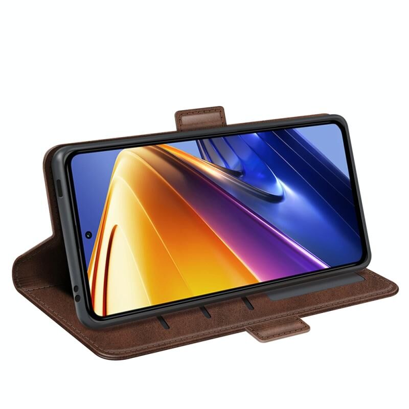 Για Xiaomi Poco F4 GT Διπλής όψης μαγνητική πόρπη Flip δερμάτινη θήκη τηλεφώνου (καφέ)