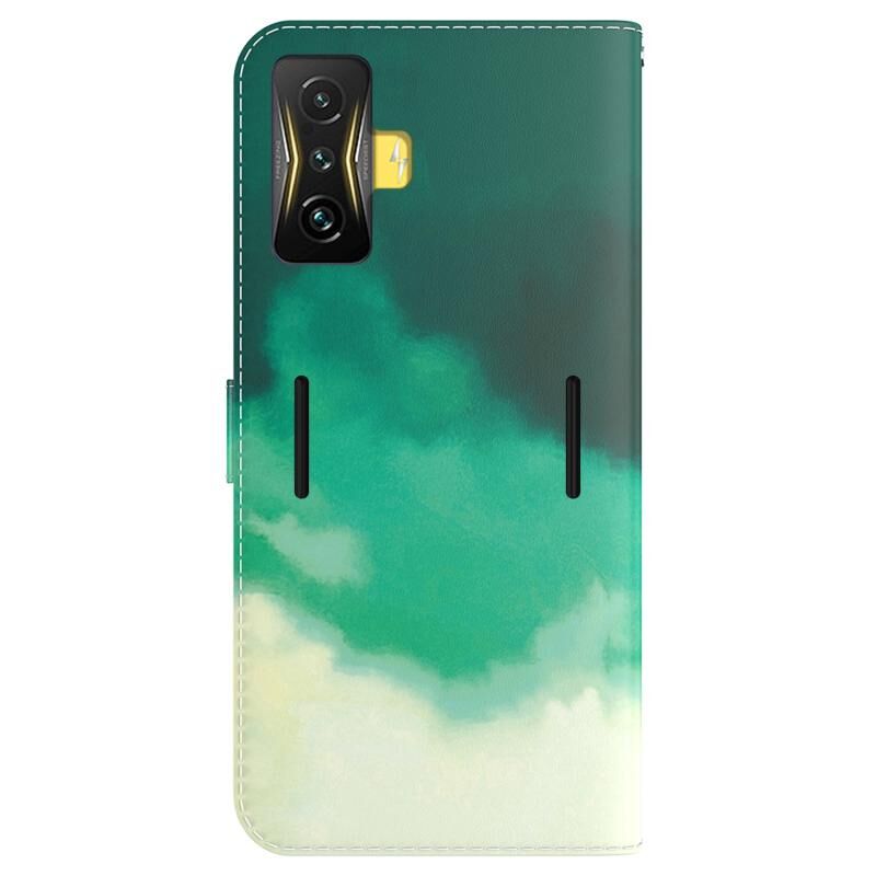 Για Xiaomi Poco F4 GT / Redmi K50 Gaming Watercolor μοτίβο δερμάτινη θήκη τηλεφώνου (κυανό πράσινο)