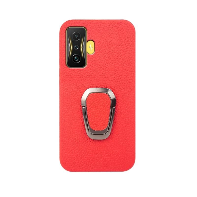 Θήκη τηλεφώνου από γνήσιο δέρμα με υφή λitchi και δακτύλιο στήριξης για Xiaomi Poco F4 GT (Κόκκινο)