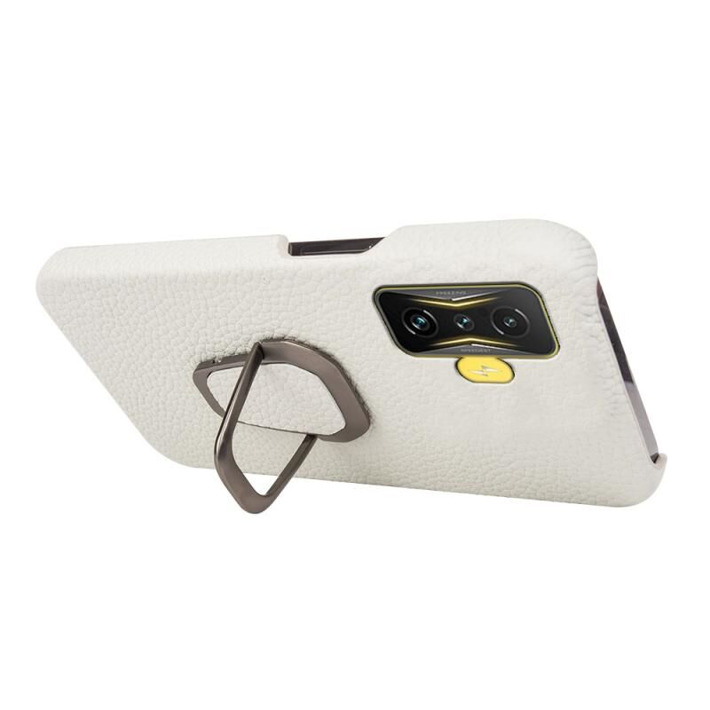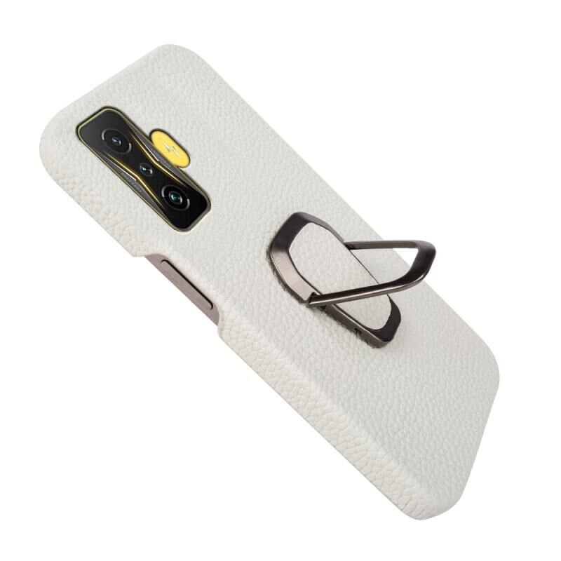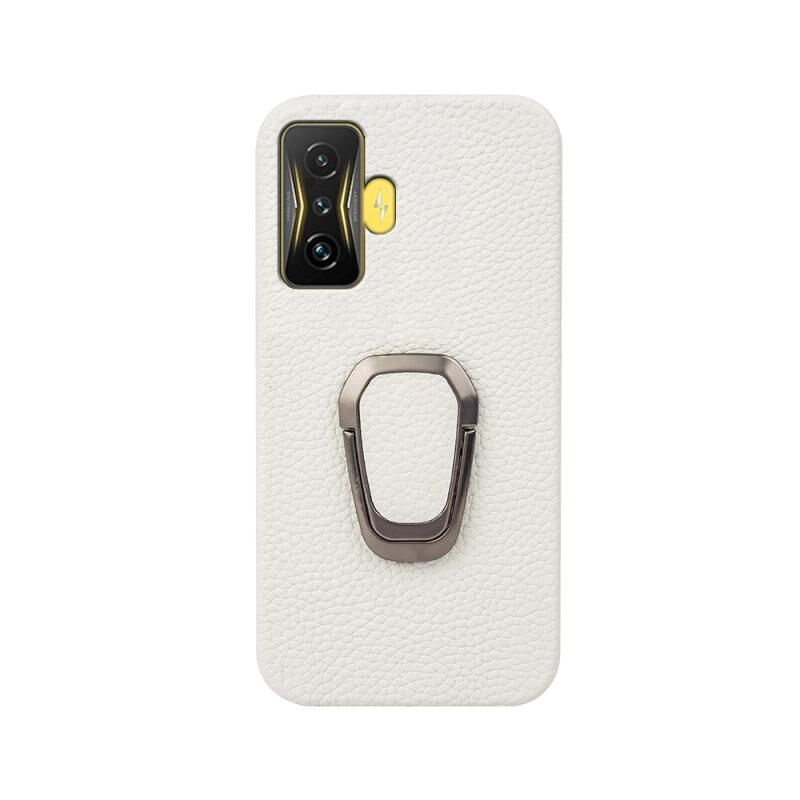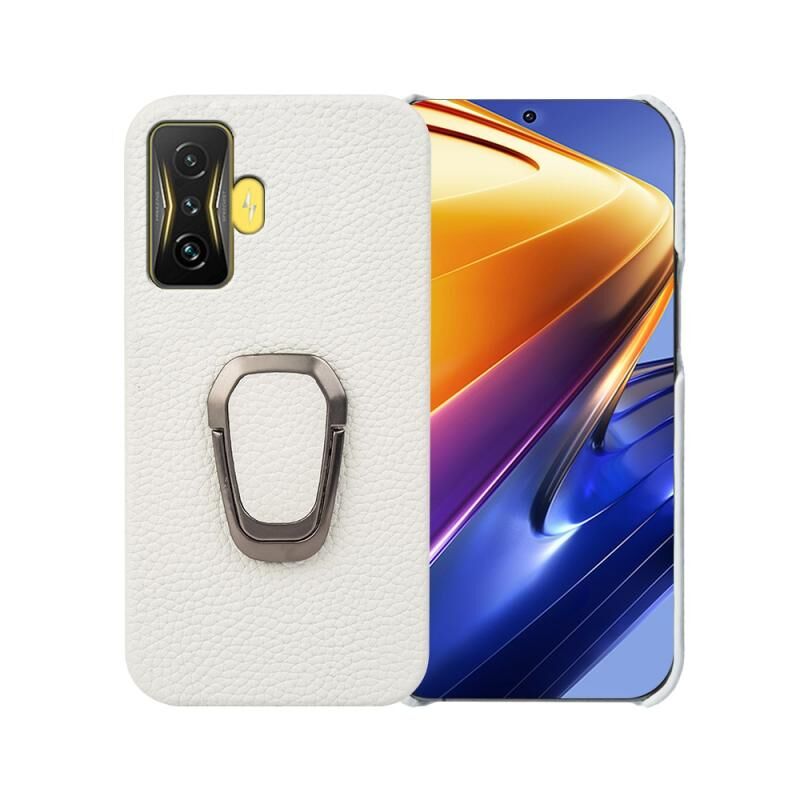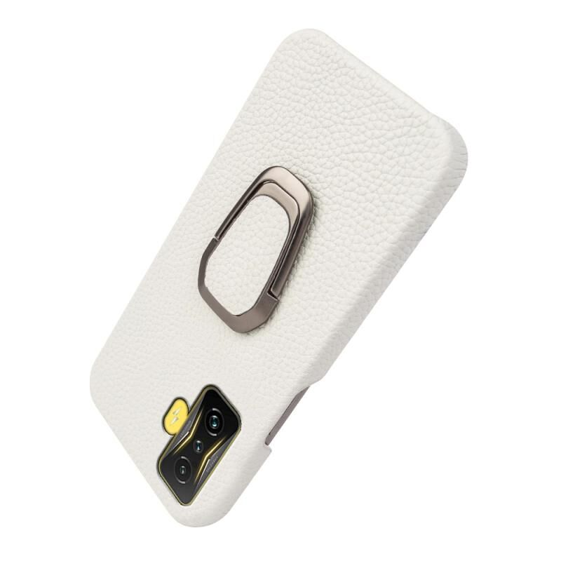 Θήκη τηλεφώνου από γνήσιο δέρμα με υφή λitchi και δακτύλιο στήριξης για Xiaomi Poco F4 GT (Λευκό)