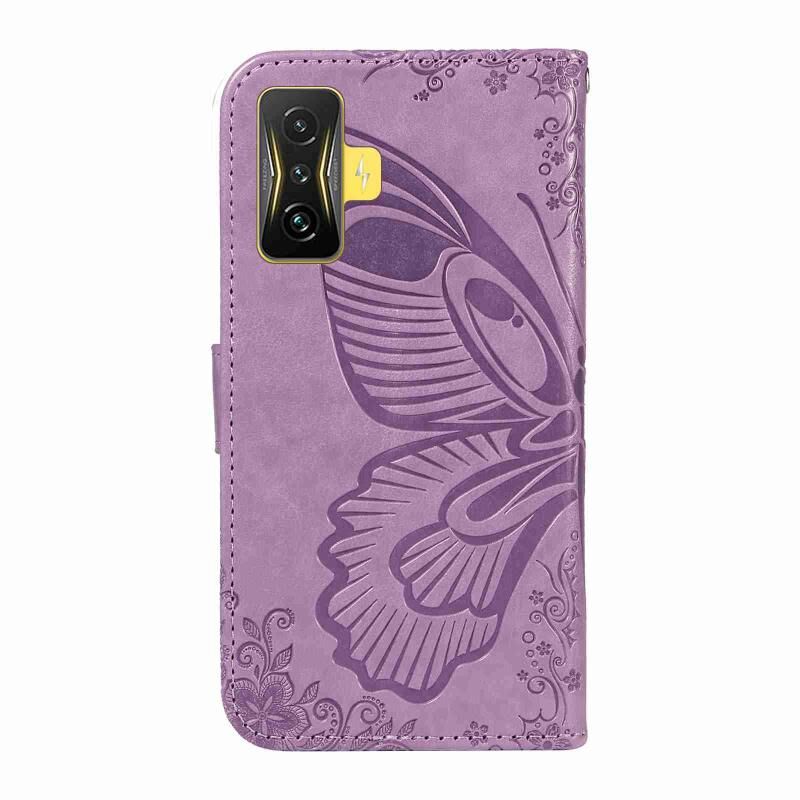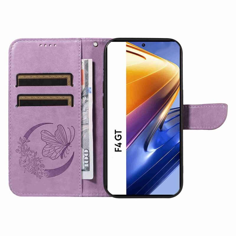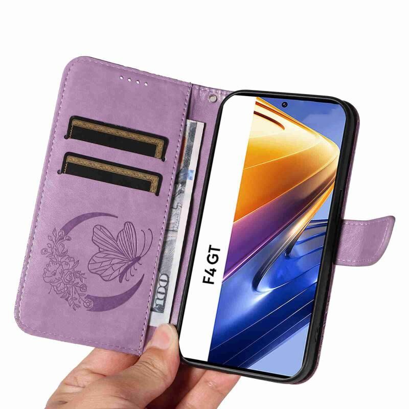 Θήκη τηλεφώνου από δέρμα με ανάγλυφο σχέδιο πεταλούδας για Xiaomi Poco F4 GT (Κόκκινο)