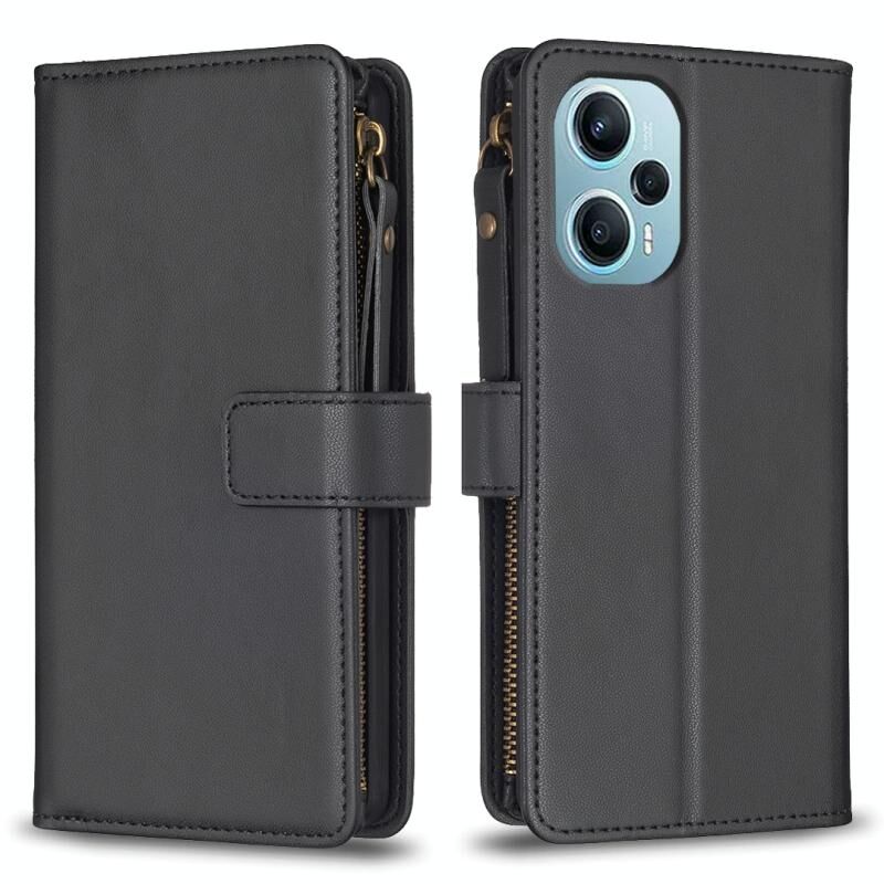 Για Xiaomi Poco F5 5G 9 Card Slots φερμουάρ πορτοφόλι δέρμα Flip υπόθεση τηλεφώνου (μαύρο)