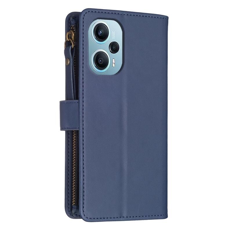 Για Xiaomi Poco F5 5G 9 Card Slots φερμουάρ πορτοφόλι δέρμα Flip υπόθεση τηλεφώνου (μπλε)