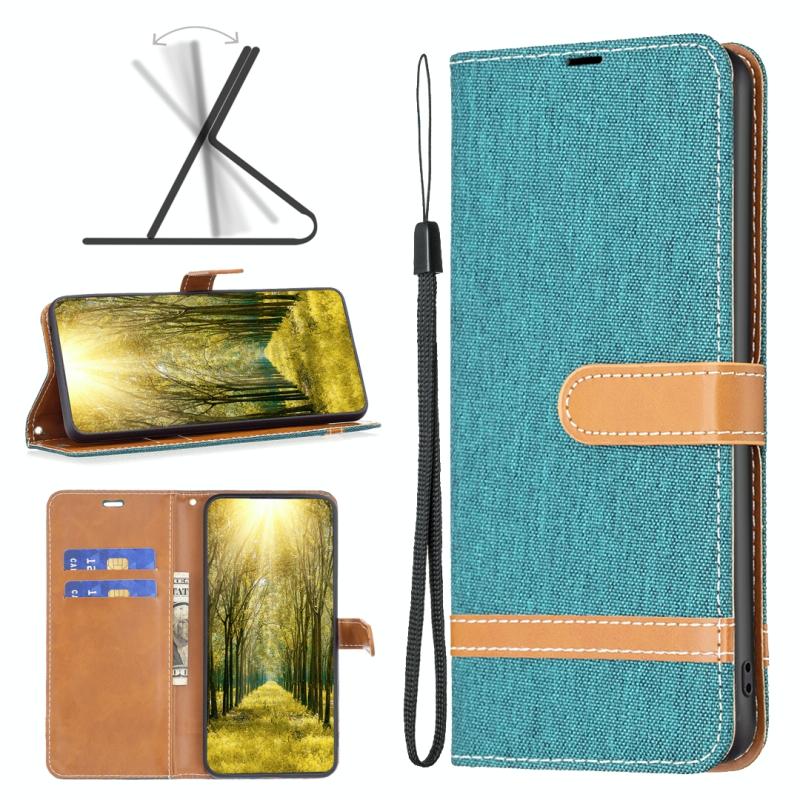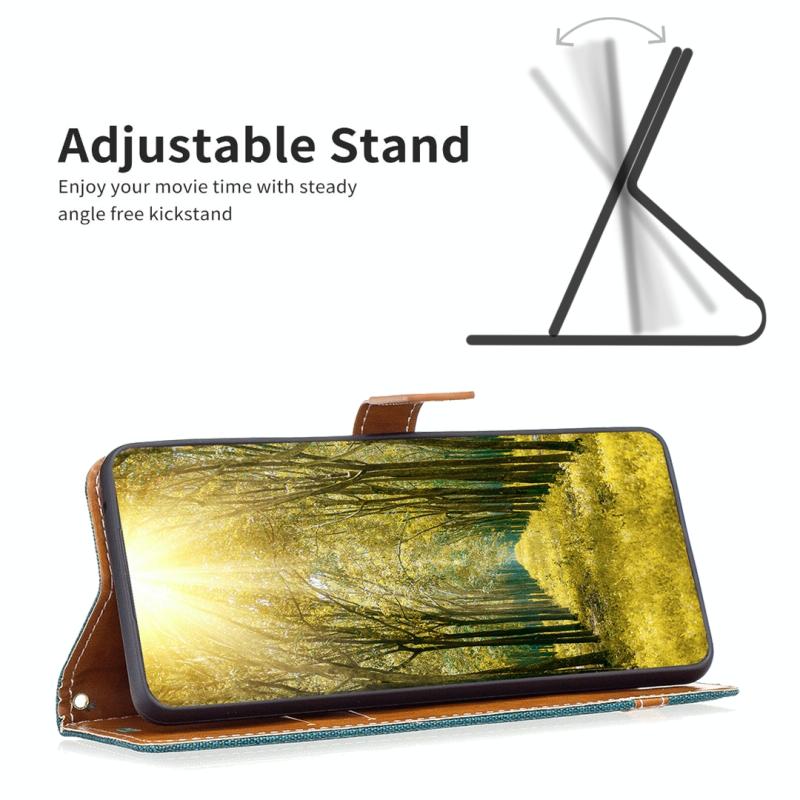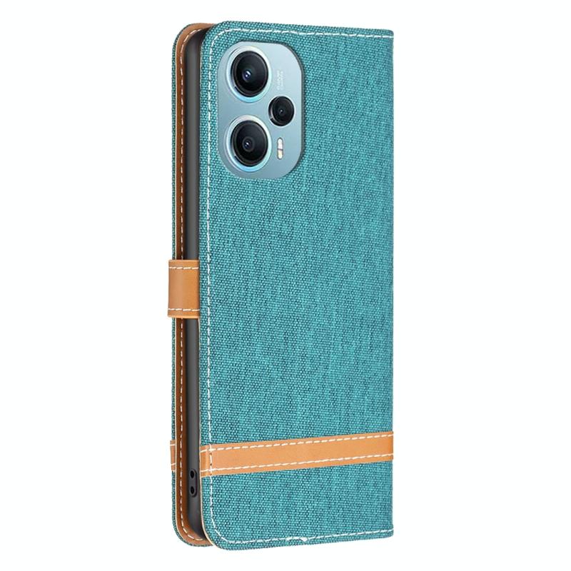 Θήκη τηλεφώνου από δέρμα με υφή denim και χρωματικό μπλοκ για Xiaomi Poco F5 5G / Redmi Note 12 Turbo (Σκούρο μπλε)