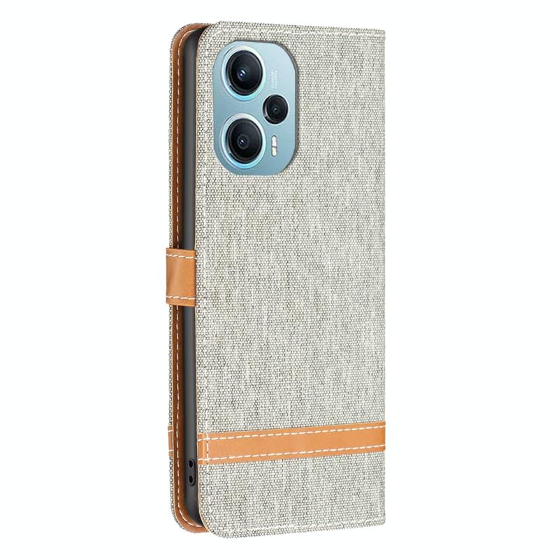 Θήκη τηλεφώνου από δέρμα με υφή denim και χρωματικό μπλοκ για Xiaomi Poco F5 5G / Redmi Note 12 Turbo (Μαύρο)