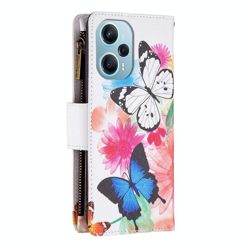 Θήκη τηλεφώνου από δέρμα με φερμουάρ και πολύχρωμο σχέδιο για Xiaomi Poco F5 5G / Redmi Note 12 Turbo (Δύο Πεταλούδες)