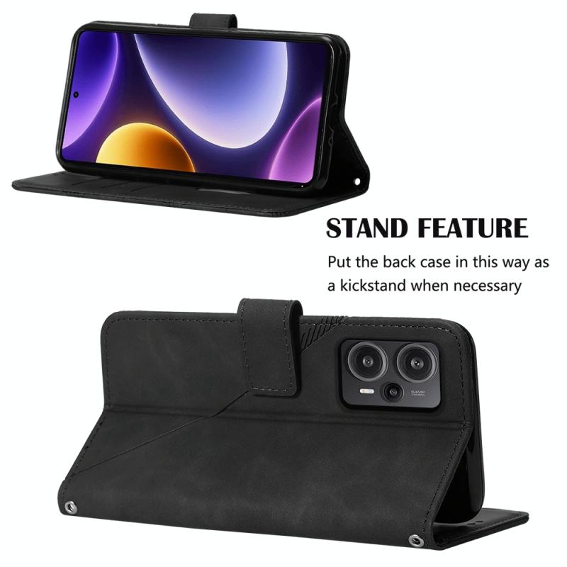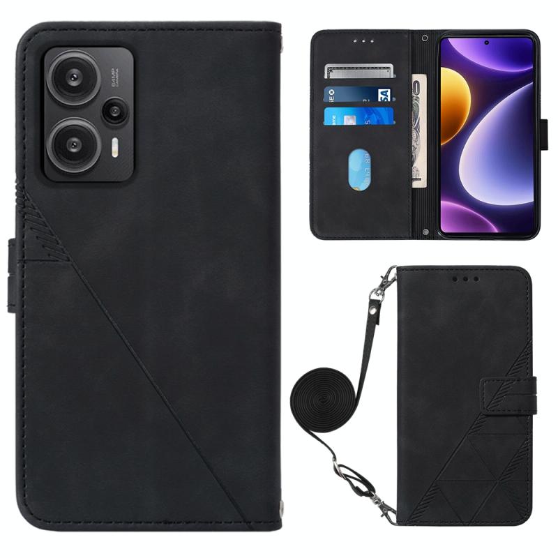 Θήκη δερμάτινη με λουρί για Xiaomi Poco F5 5G/Redmi Note 12 Turbo (Μαύρο)