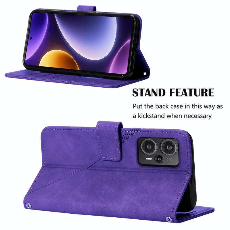 Θήκη δερμάτινη με λουρί για Xiaomi Poco F5 5G/Redmi Note 12 Turbo (Μωβ)