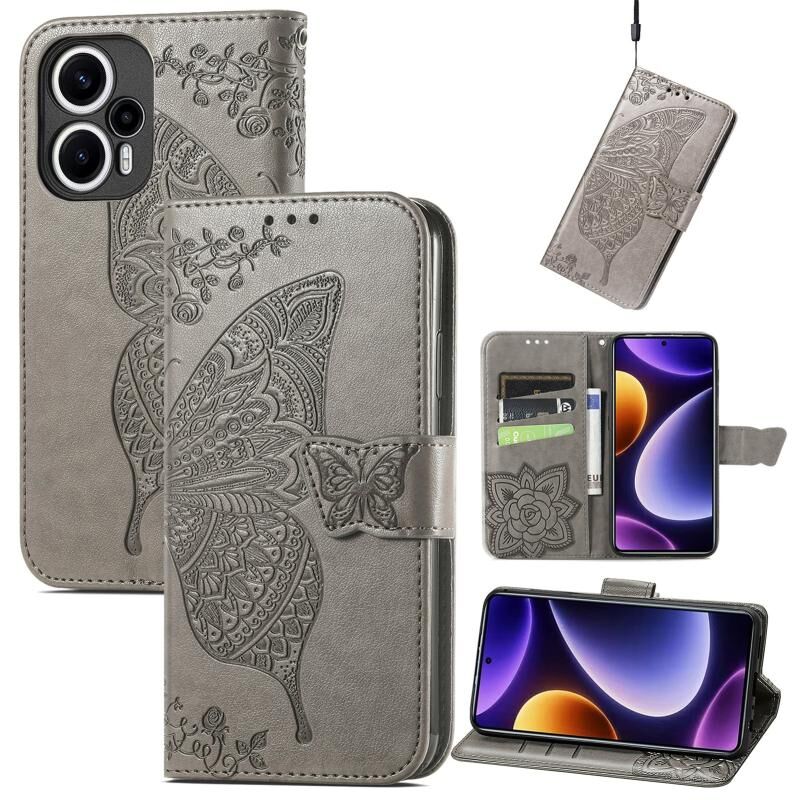 Θήκη τηλεφώνου δερμάτινη ανάγλυφη με σχέδιο πεταλούδας και λουλουδιών για Xiaomi Poco F5 (Μαύρο)