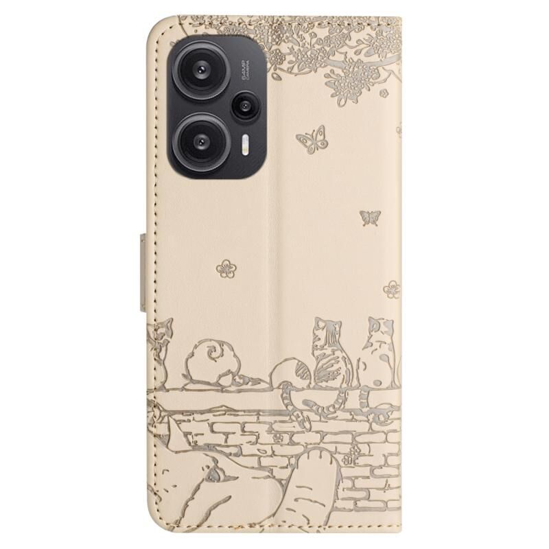 For Xiaomi Poco F5 Cat Embossing Pattern Leather Phone Case with Lanyard(Beige)