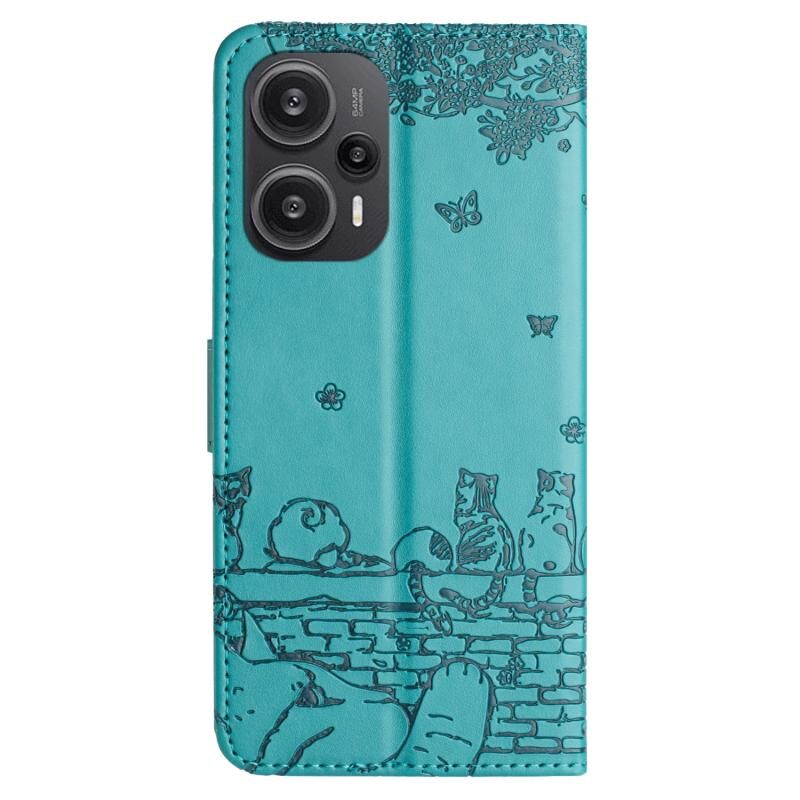 For Xiaomi Poco F5 Cat Embossing Pattern Leather Phone Case with Lanyard(Blue)