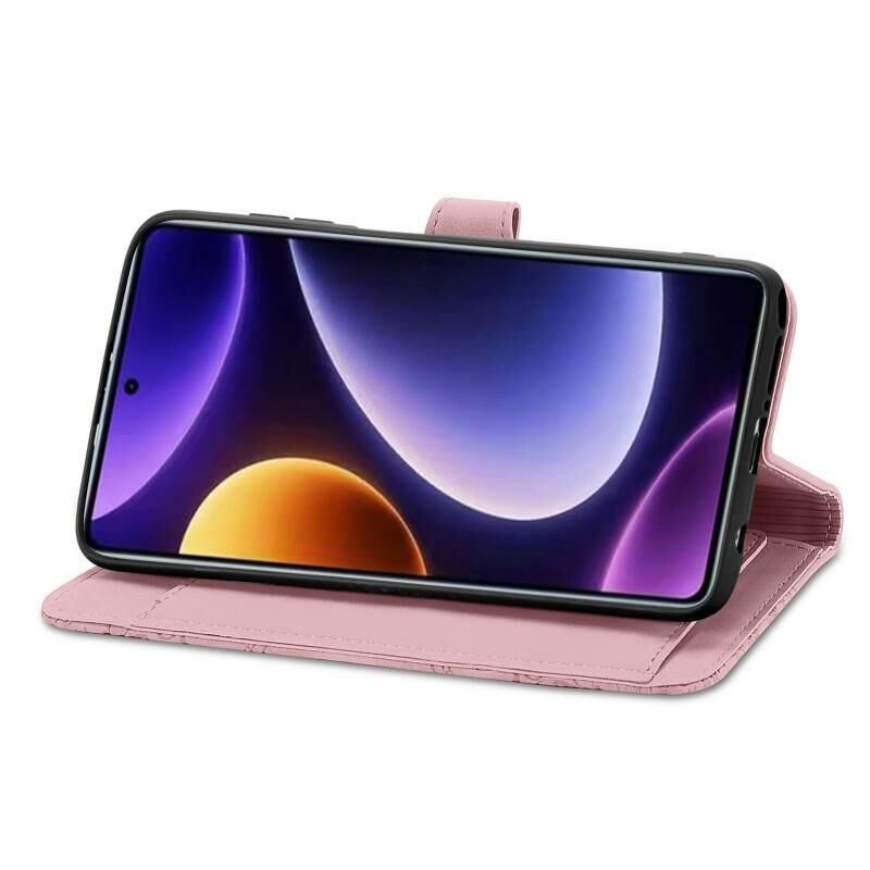 Για Xiaomi POCO F5 ανάγλυφο λουλούδι φερμουάρ δερμάτινη θήκη τηλεφώνου (ροζ)
