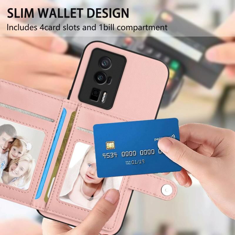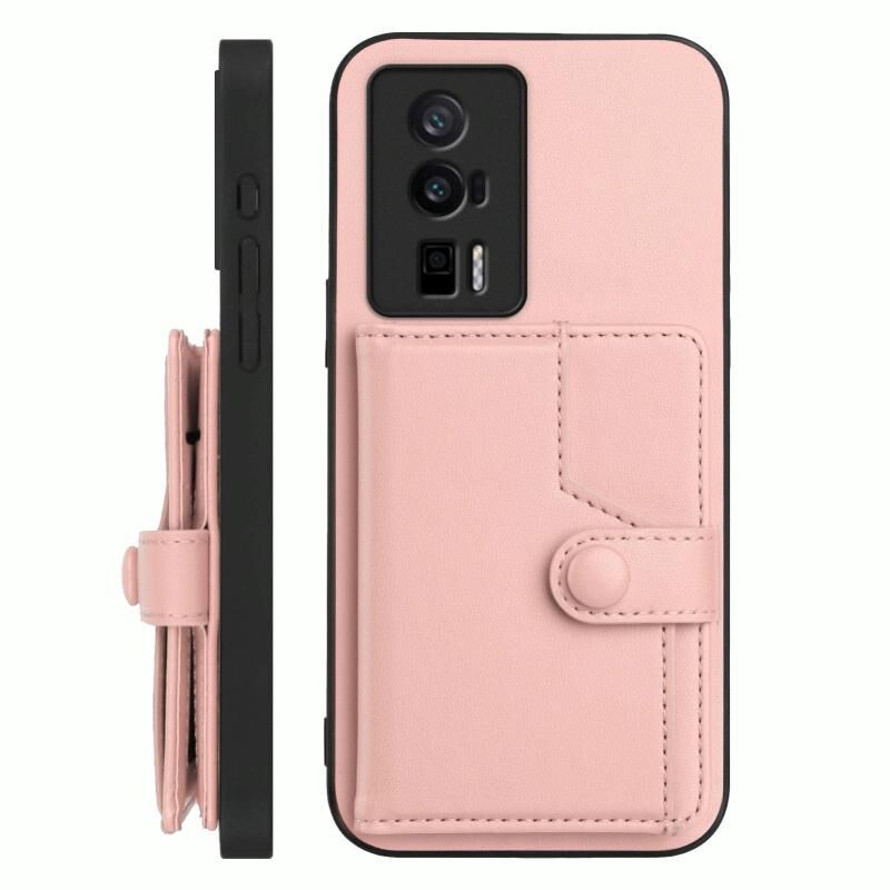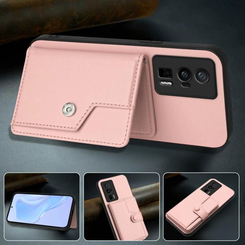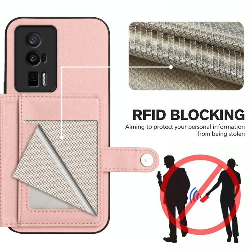Για Xiaomi Poco F5 Pro 5G Button Card Bag RFID Anti-theft τηλέφωνο υπόθεση (ροζ)