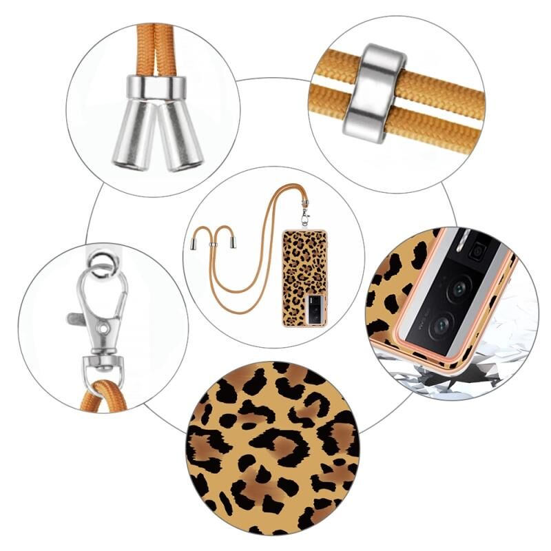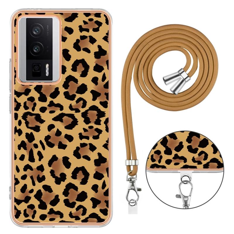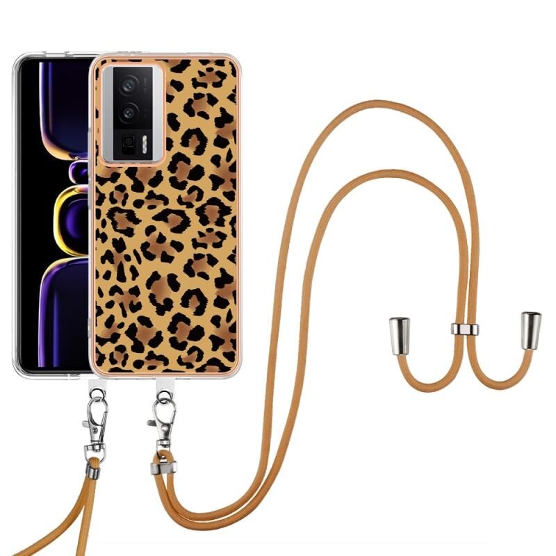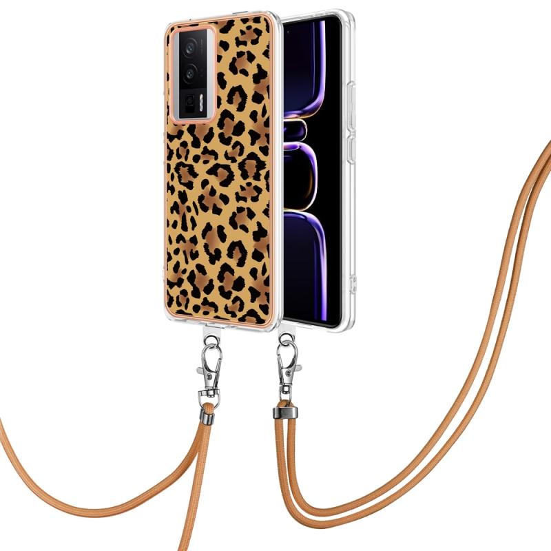 Θήκη Xiaomi Poco F5 Pro 5G / Redmi K60 με Λουρί και Επιμετάλλωση (Σχέδιο Λεοπάρ)