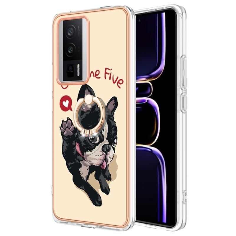 For Xiaomi Poco F5 Pro 5G / Redmi K60 Electroplating Dual-side IMD Phone Case with Ring Holder(Lucky Dog)