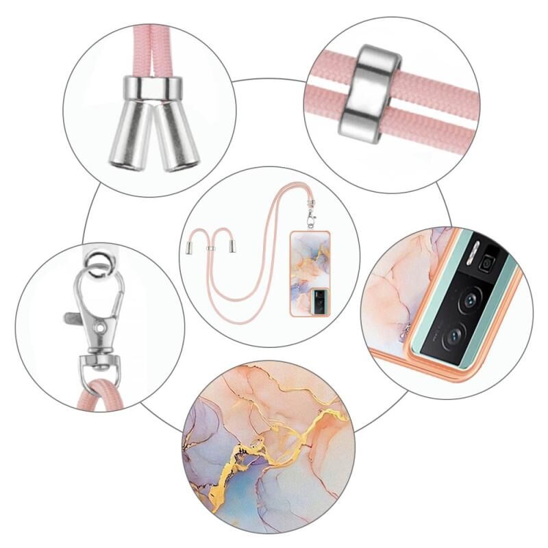 Θήκη κινητού τηλεφώνου για Xiaomi Poco F5 Pro 5G / Redmi K60 με ηλεκτρολυτική επιμετάλλωση IMD TPU με κορδόνι (Ροζ Λέπια)