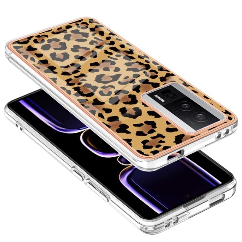 Θήκη τηλεφώνου για Xiaomi Poco F5 Pro 5G / Redmi K60 με ηλεκτρολυτική μαρμάρινη επένδυση IMD διπλής όψης (εκτύπωση λεοπάρδαλης)