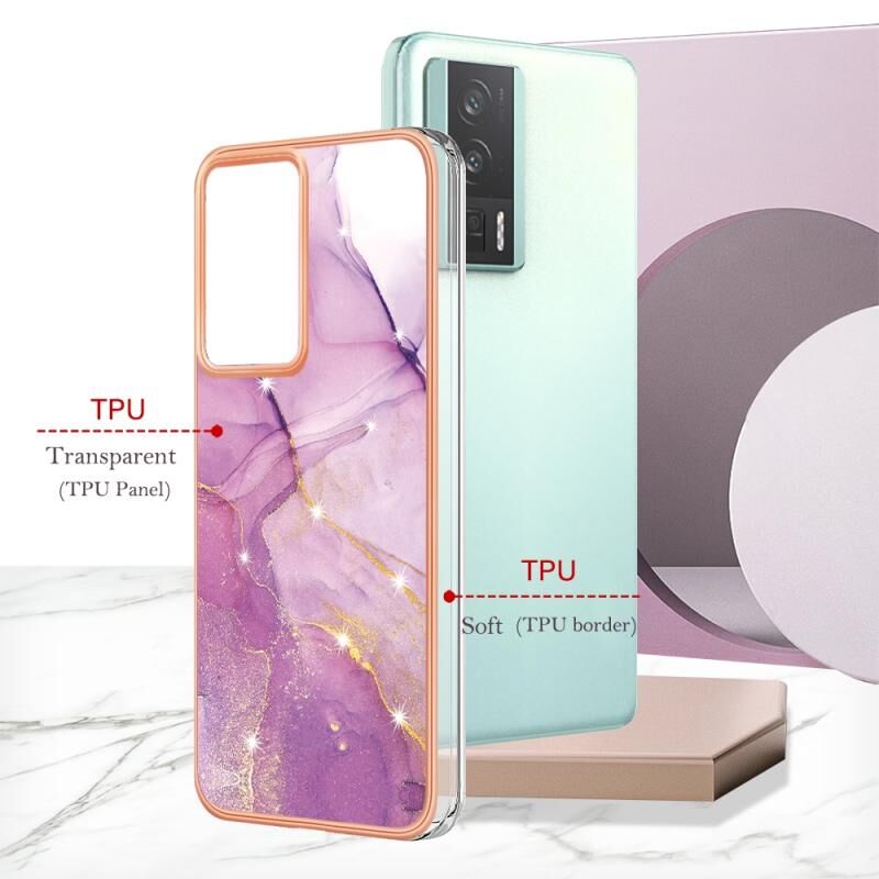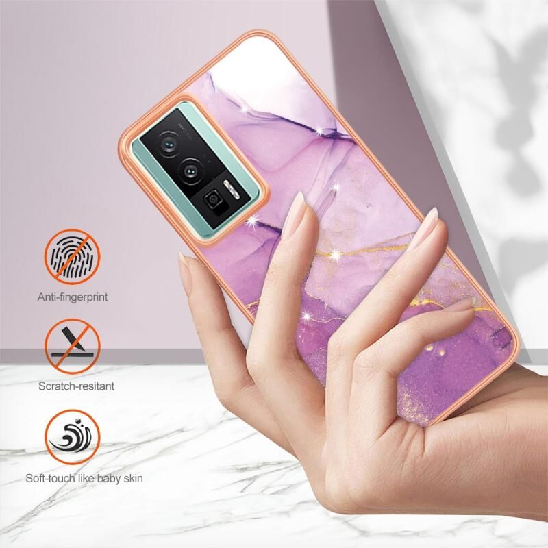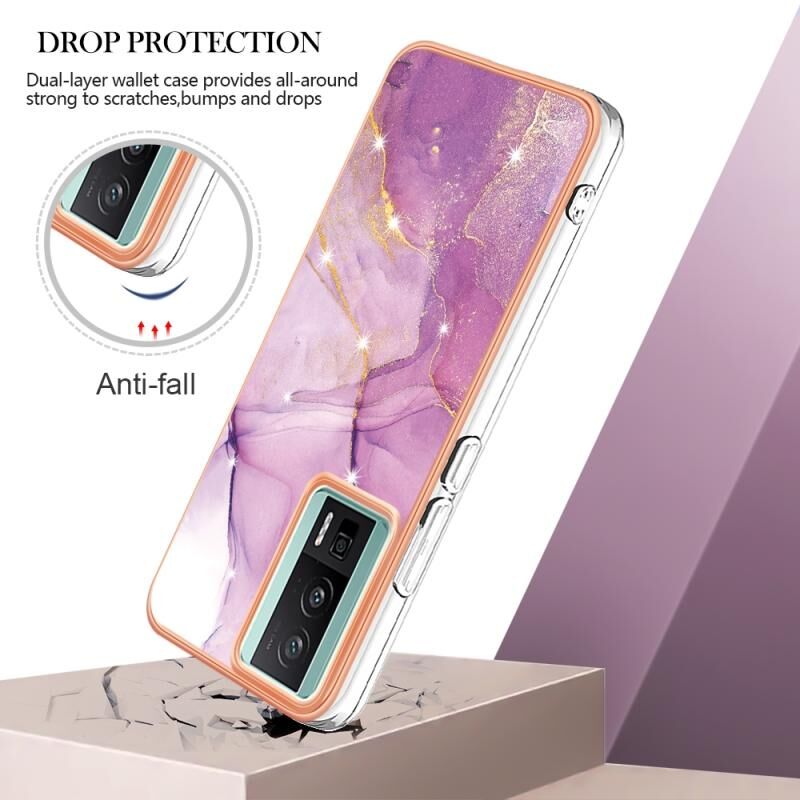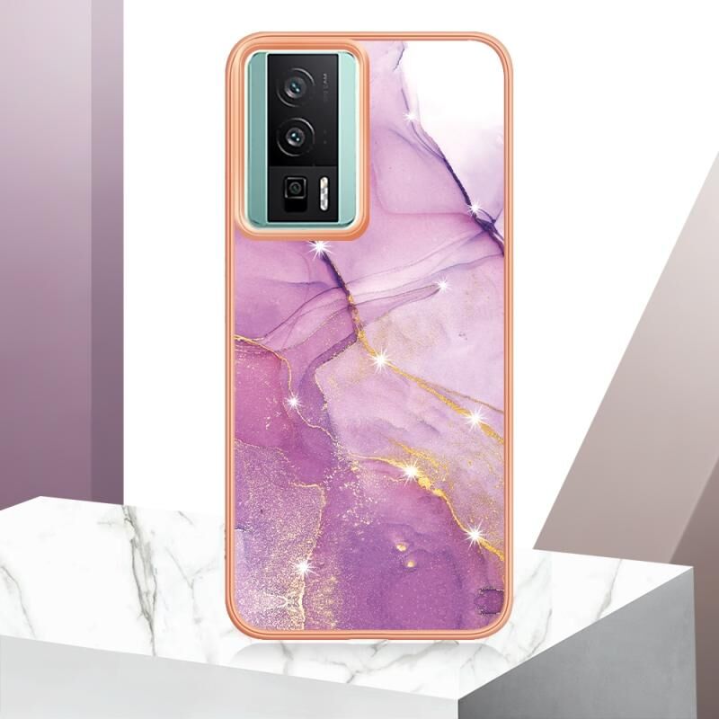 For Xiaomi Poco F5 Pro 5G/Redmi K60 Electroplating Marble Dual-side IMD Phone Case(Purple 001)