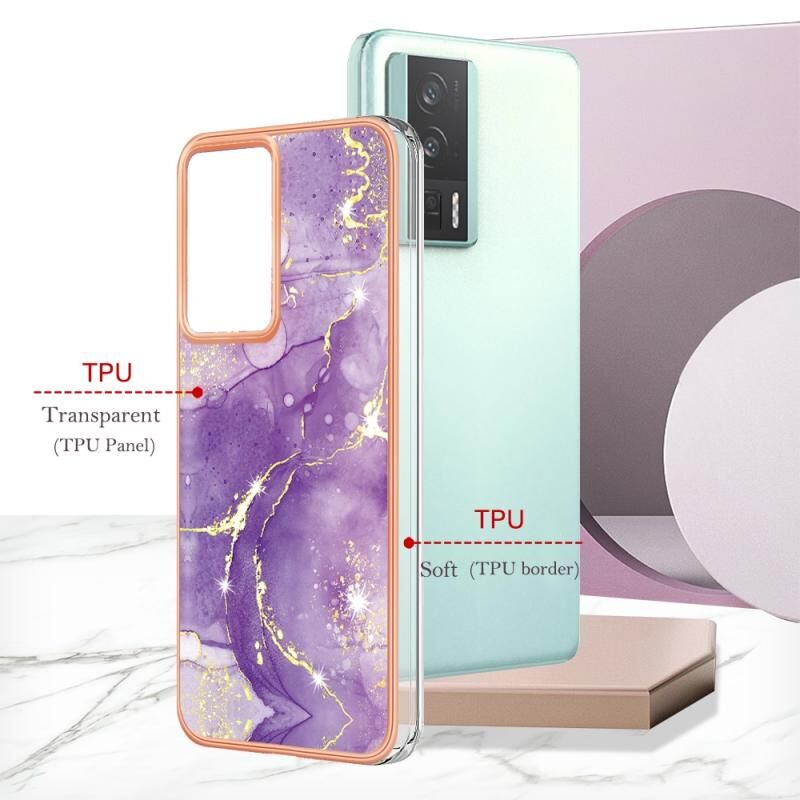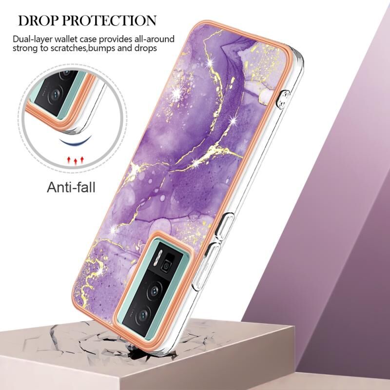 For Xiaomi Poco F5 Pro 5G/Redmi K60 Electroplating Marble Dual-side IMD Phone Case(Purple 002)