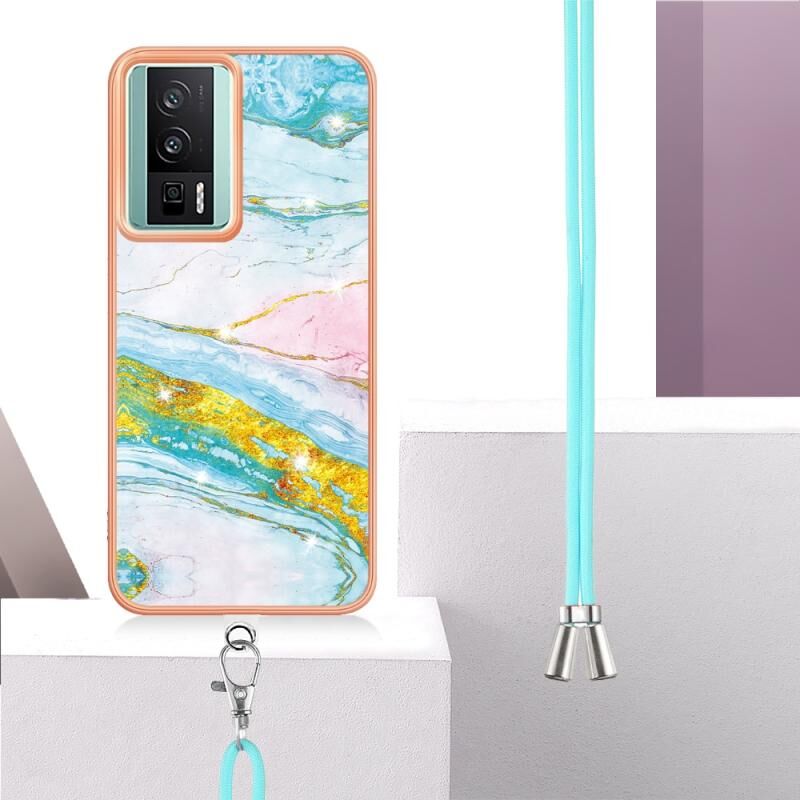 For Xiaomi Poco F5 Pro 5G / Redmi K60 Electroplating Marble Dual-side IMD Phone Case with Lanyard(Green 004)