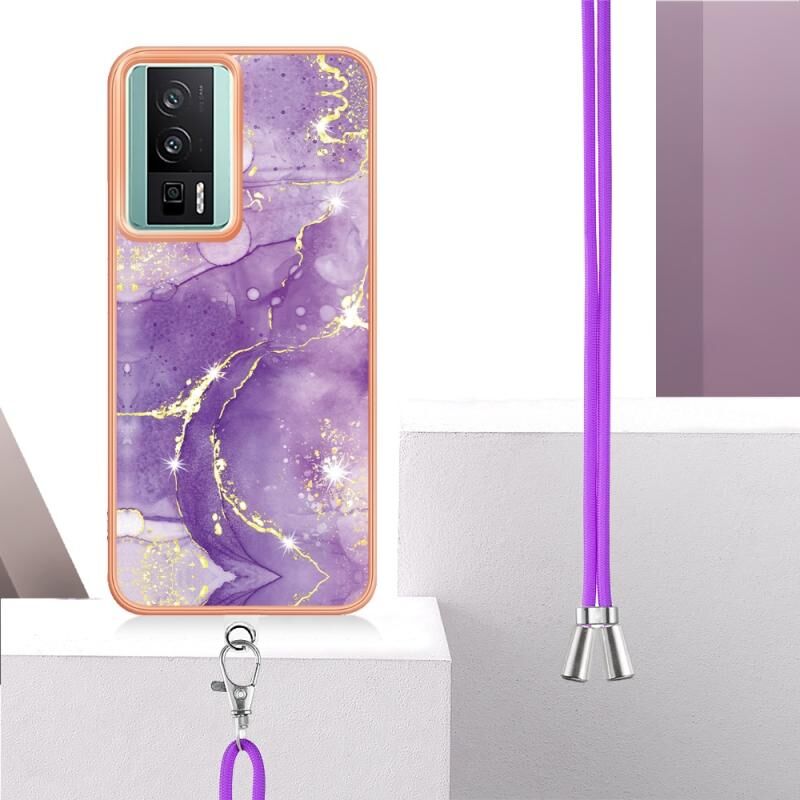 For Xiaomi Poco F5 Pro 5G / Redmi K60 Electroplating Marble Dual-side IMD Phone Case with Lanyard(Purple 002)