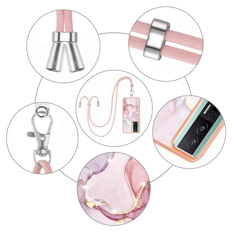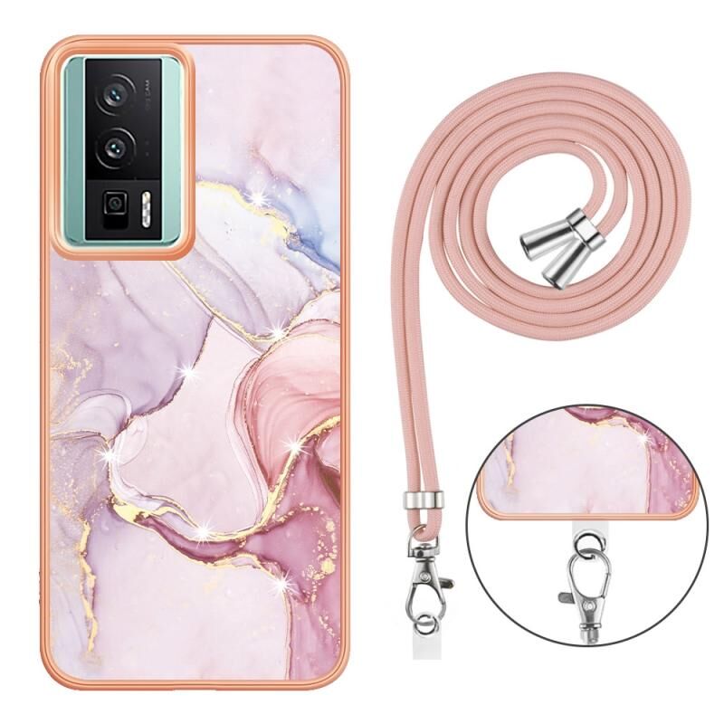 For Xiaomi Poco F5 Pro 5G / Redmi K60 Electroplating Marble Dual-side IMD Phone Case with Lanyard(Rose Gold 005)