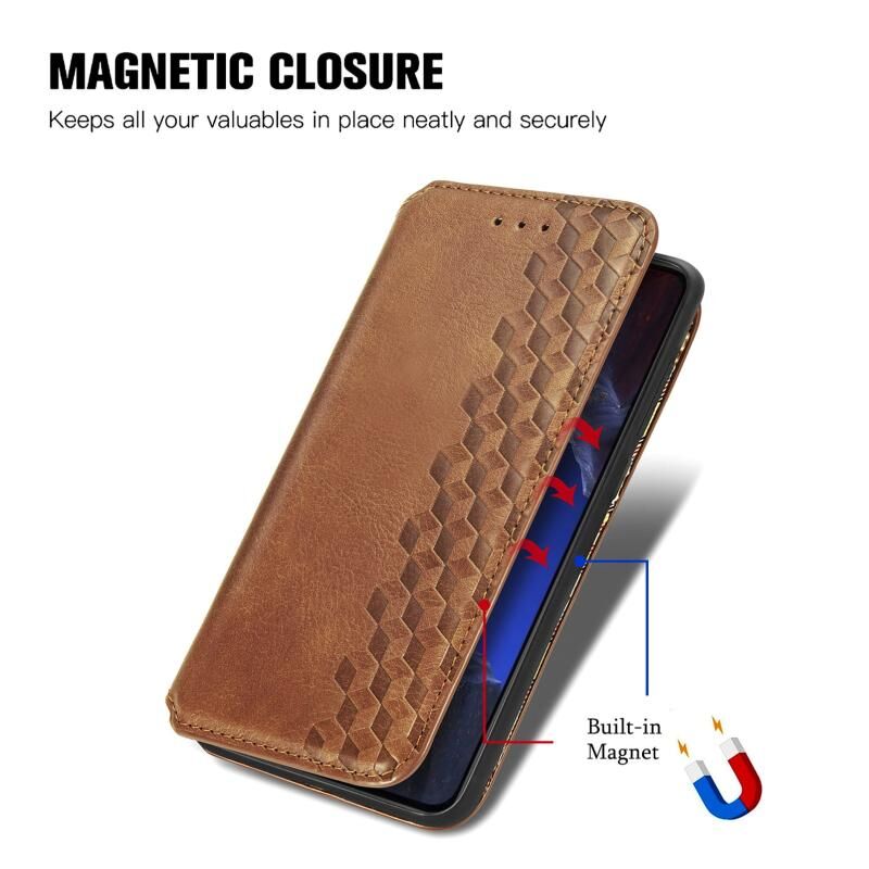 Για Xiaomi Poco F5 Pro Cubic Grid Pressed μαγνητική δερμάτινη θήκη τηλεφώνου (καφέ)