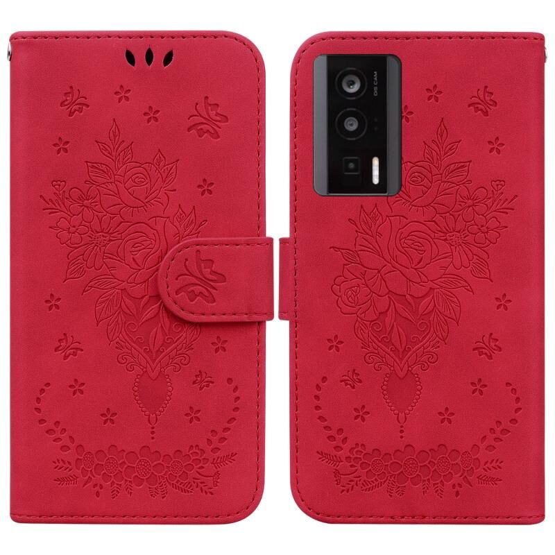 Για Xiaomi Poco F5 Pro / Redmi K60 Butterfly Rose ανάγλυφη δερμάτινη θήκη τηλεφώνου (κόκκινο)
