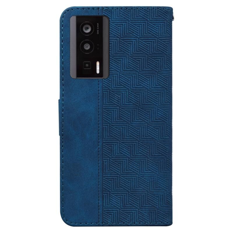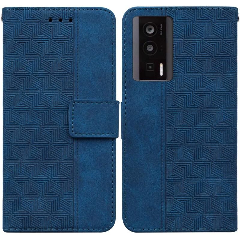 Για Xiaomi Poco F5 Pro / Redmi K60 Γεωμετρική ανάγλυφη δερμάτινη θήκη τηλεφώνου (μπλε)