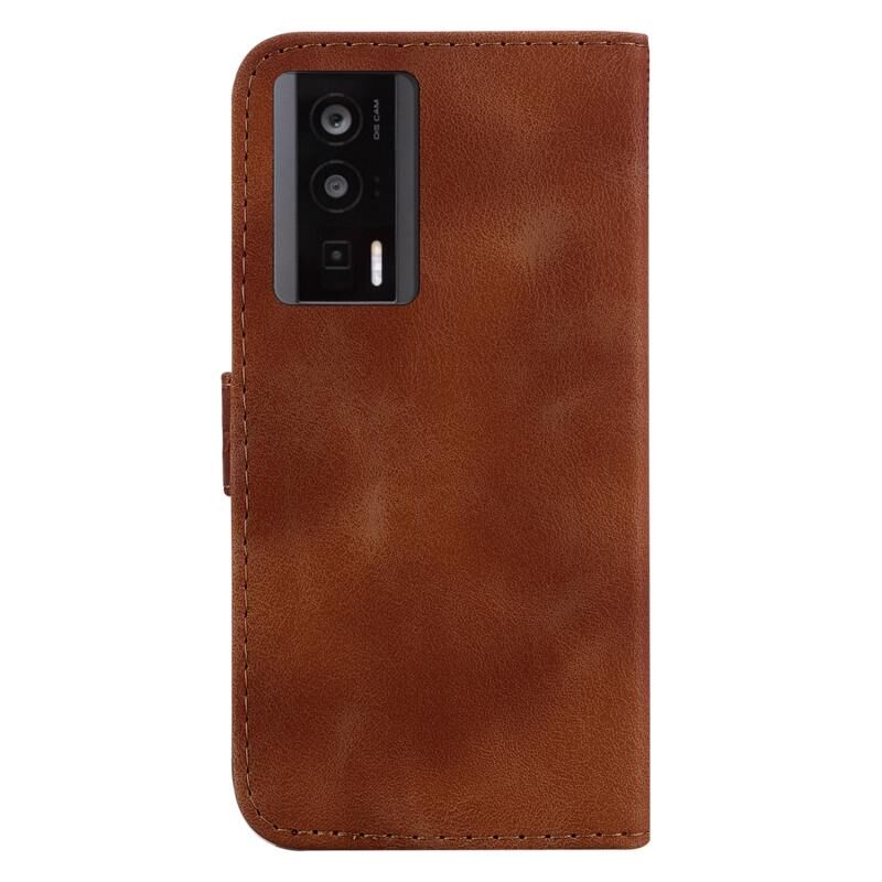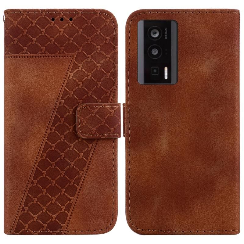 Για Xiaomi Poco F5 Pro/Redmi K60/K60 Pro 7-shaped ανάγλυφη δερμάτινη θήκη τηλεφώνου (καφέ)