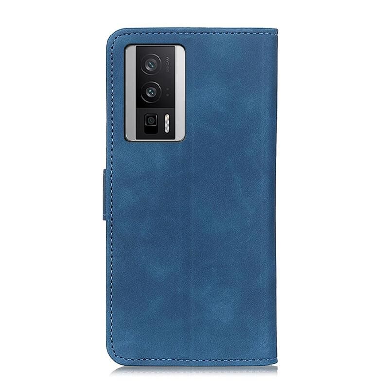 Θήκη τηλεφώνου από δέρμα με αναδιπλούμενο σχέδιο και ανάγλυφη υφή retro για Xiaomi Poco F5 Pro/Redmi K60/K60 Pro KHAZNEH (Μπλε)