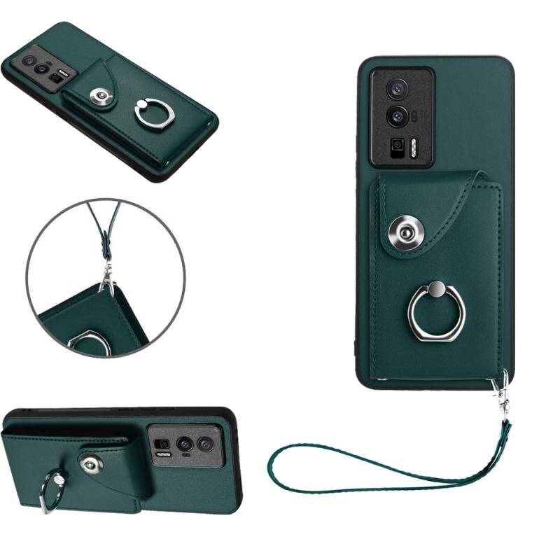Για Xiaomi Poco F5 Pro / Redmi K60 / K60 Pro Οργανική κάρτα τσάντα δαχτυλίδι κάτοχος PU τηλέφωνο υπόθεση με κορδόνι (πράσινο)