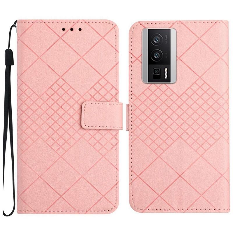 Για Xiaomi Poco F5 Pro Rhombic Grid Texture Leather Phone Case (ροζ)